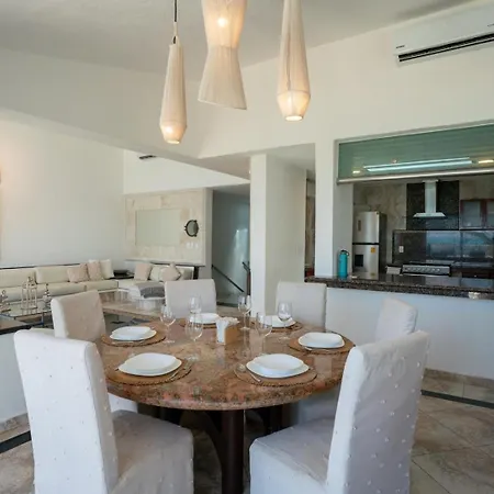4Br Beachfront Beautiful House W/ Pool villa offers swift access to various city sites, such as Adventure Bay Marina, situated a 5-minute walk away. Located 2.5 km from Chac Mool Beach, this accommodation boasts a terrace with views of the sea.