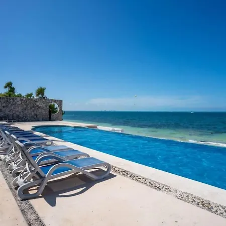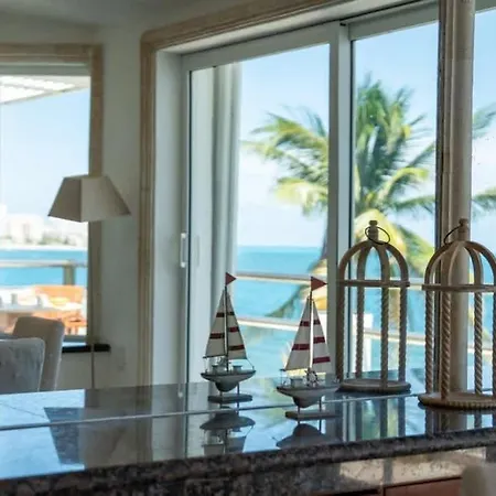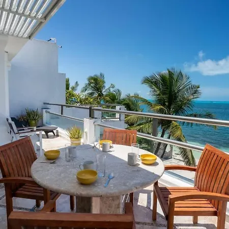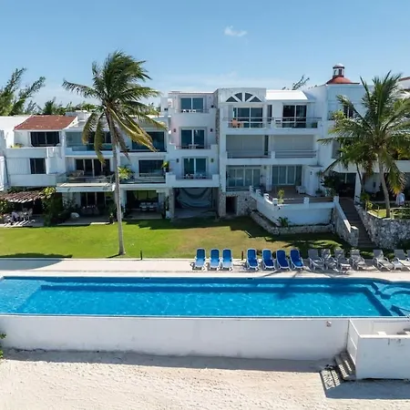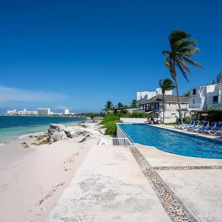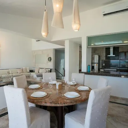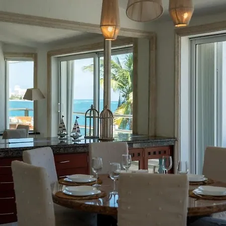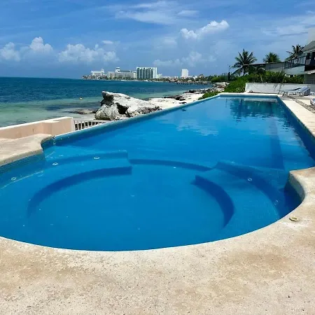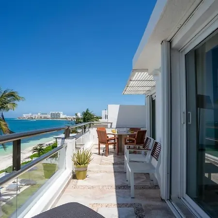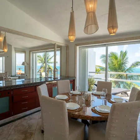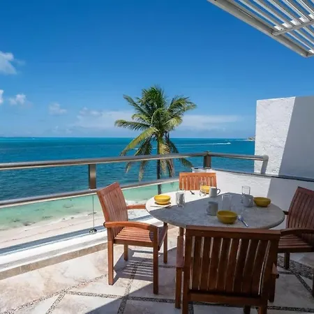 Villan 4Br Beachfront Beautiful House W/ Pool, som ligger inom 2 km från Playa Chac Mool, har en terrass med utsikt över havet.